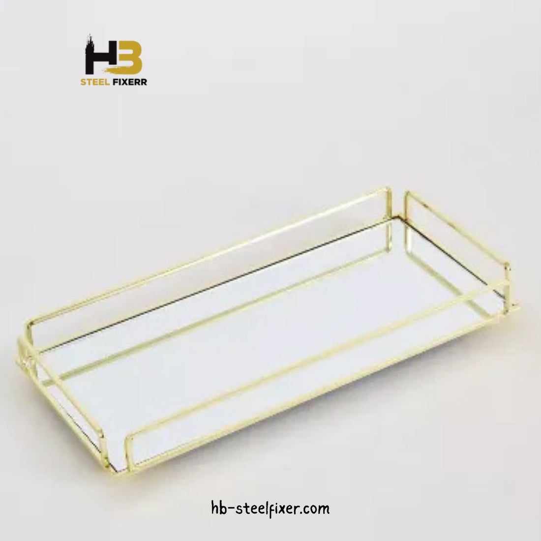 Elevate your space with this vintage-style vanity tray featuring gold handles and a mirrored acrylic...