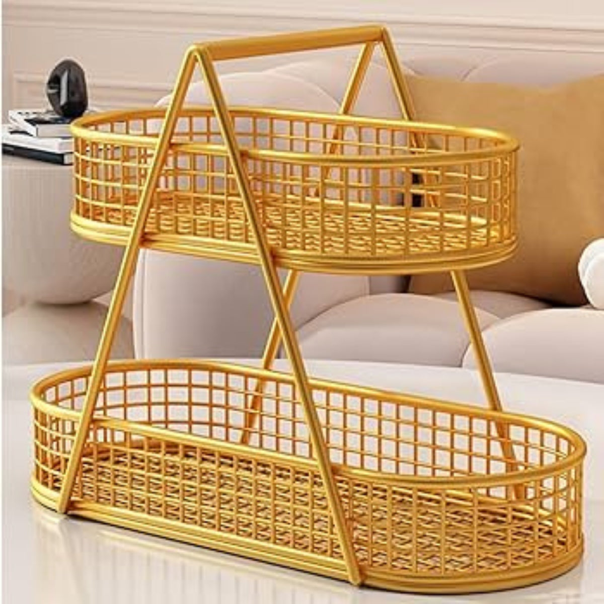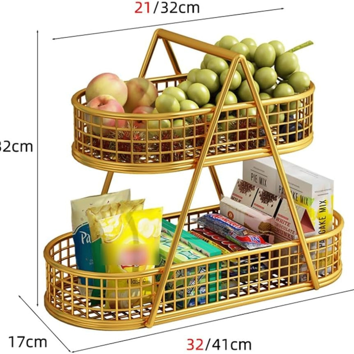 Add functionality and elegance to your space with this 2-tier countertop fruit basket, designed for storing fruits, vegetables, bread, snacks, and more. Crafted from durable iron with a modern, layered design, it offers both ample storage and a stylish touch for your kitchen or dining area. Its stable structure ensures long-lasting use while keeping your counter clutter-free.