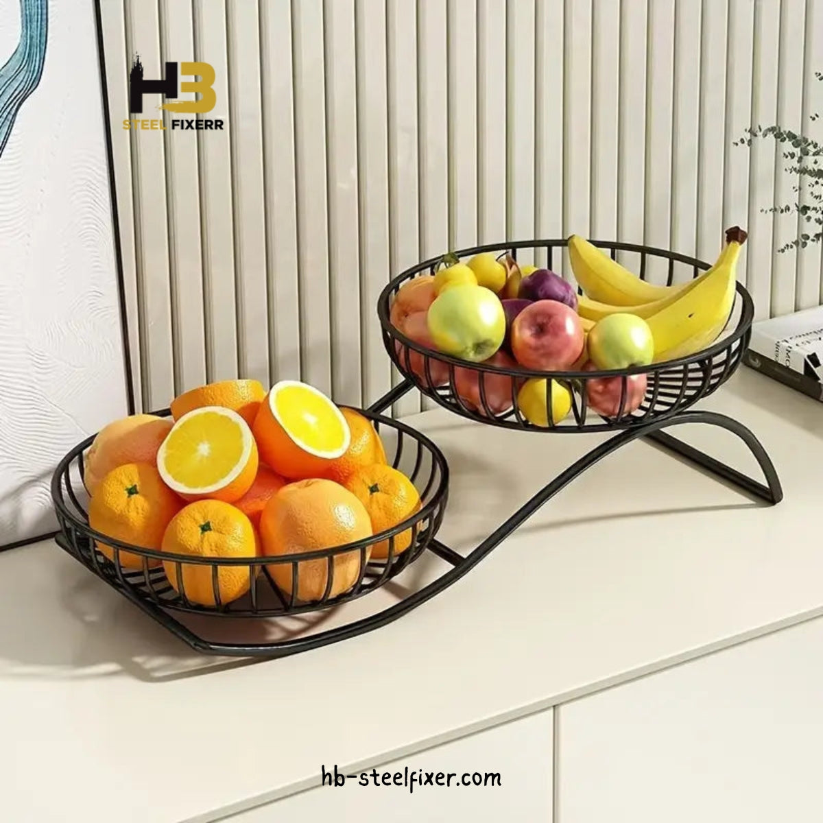 Elevate your home with this Nordic-style 2-tier fruit basket by HB Steel Fixerr, designed for both function and modern aesthetics. Crafted from durable iron, this round fruit tray is perfect for organizing fruits, vegetables, snacks, or breads. Its compact structure and minimalist design make it an ideal centerpiece for kitchen counters or dining tables, adding elegance and utility to your daily routine.