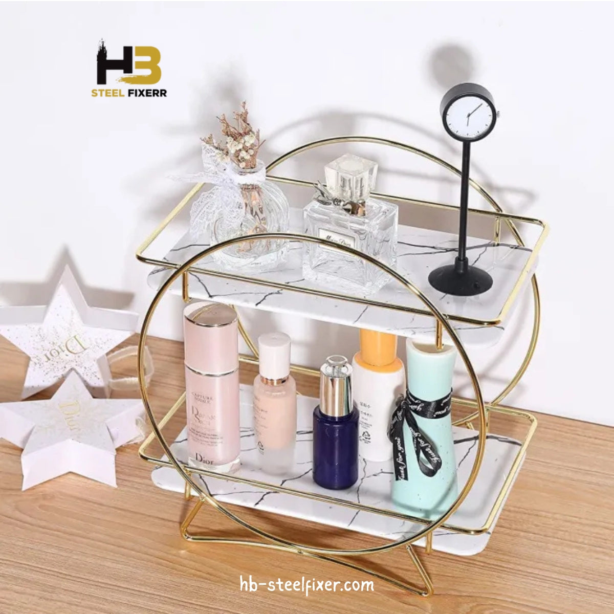 Add elegance and organization to your space with this 2-tier gold organizer rack. Perfect for cosmetics, spices, or countertop décor, it’s both stylish and practical. Lightweight yet durable, it fits seamlessly in bathrooms, kitchens, and vanity setups — exclusively by HB Steel Fixerr.