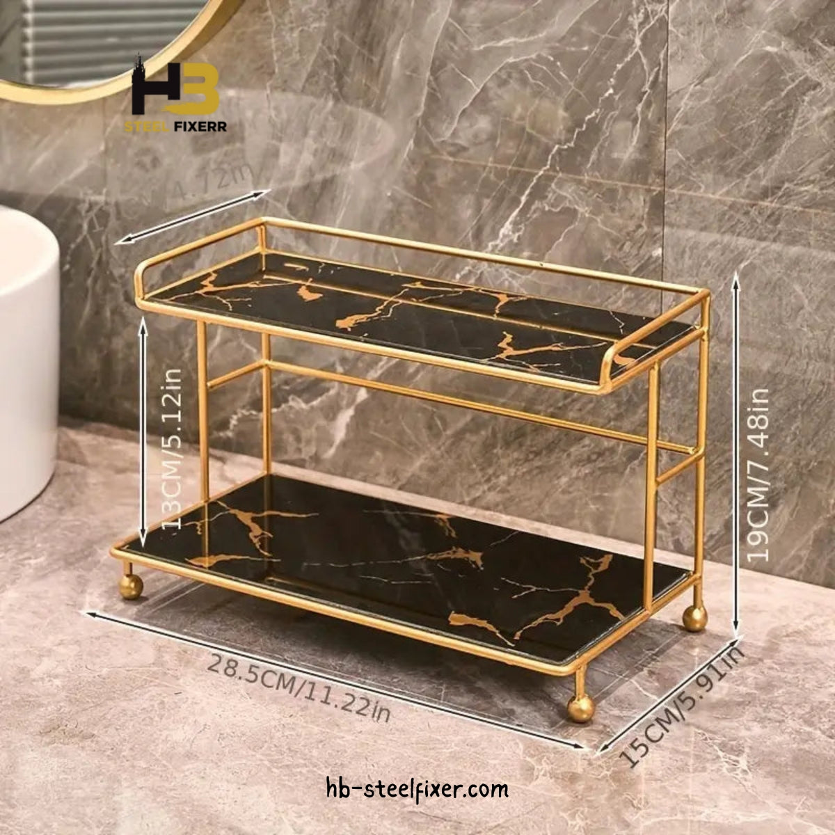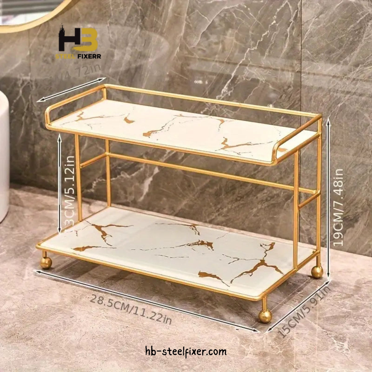 Maximize your space with this double-layer cosmetic storage rack—a perfect blend of style and functionality. Designed to neatly organize your makeup, skincare, and accessories on dressing tables, bathroom counters, or bedroom shelves.