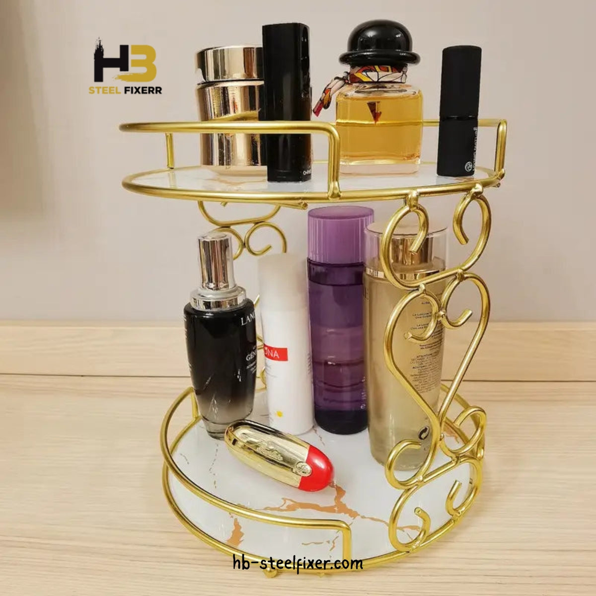 Organize your space in style with this 2-Layer Rotating Tray, designed for storing cosmetics, mouthwash cups, skincare, or small essentials across your bathroom, dressing table, or kitchen. Its 360° swivel base allows for smooth rotation, making your items easy to reach from every angle. Crafted from high-quality, durable materials, it offers both functionality and elegance. Perfect for makeup lovers, beauty professionals, or anyone looking to declutter their countertop.