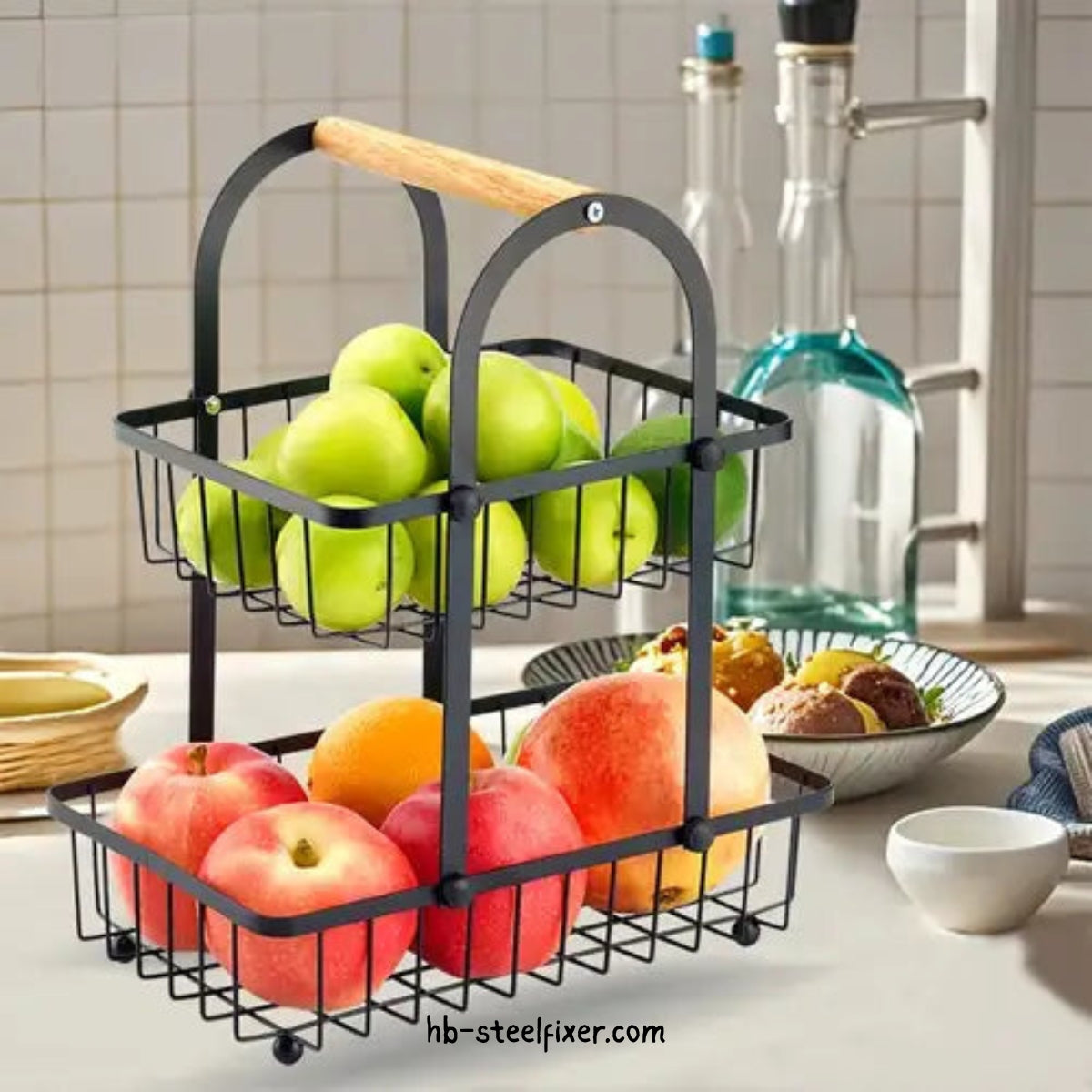 2 & 3-Tier Bohemian Style Fruit Basket – Durable Iron Kitchen Organizer