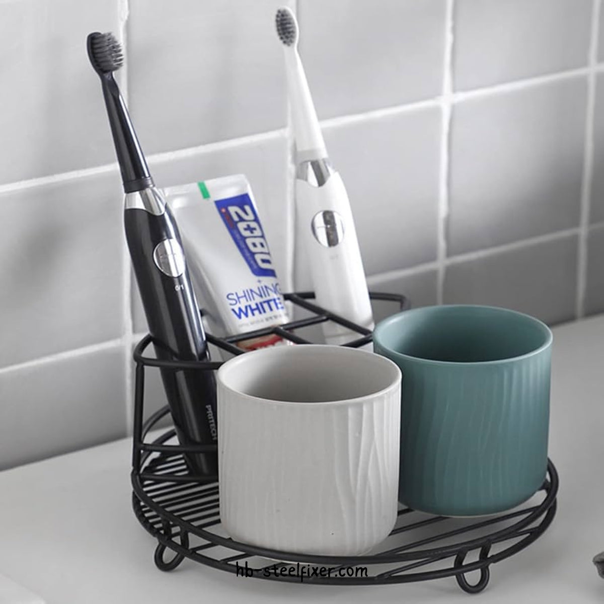 Upgrade your bathroom organization with this stylish and functional toothbrush holder and cup set. Designed for convenience and hygiene, it features two toothbrush slots, one toothpaste slot, and two high-quality ceramic cups. The stainless steel and ceramic construction ensures long-lasting use, while the minimalist design complements any bathroom decor.