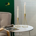 Add a modern touch to your décor with this set of 2 geometric wire candle holders, crafted from sturdy metal and designed to hold standard taper candles. Their minimalist look fits perfectly in living rooms, dining areas, or event setups.