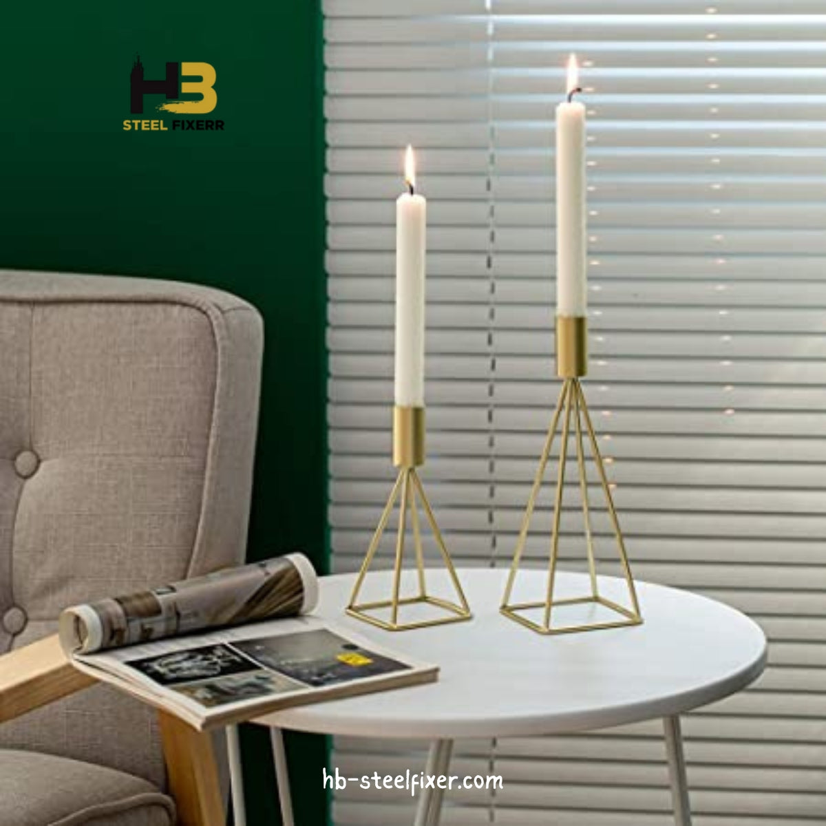 Set of 2 Geometric Taper Candle Holders – Modern Wire Design