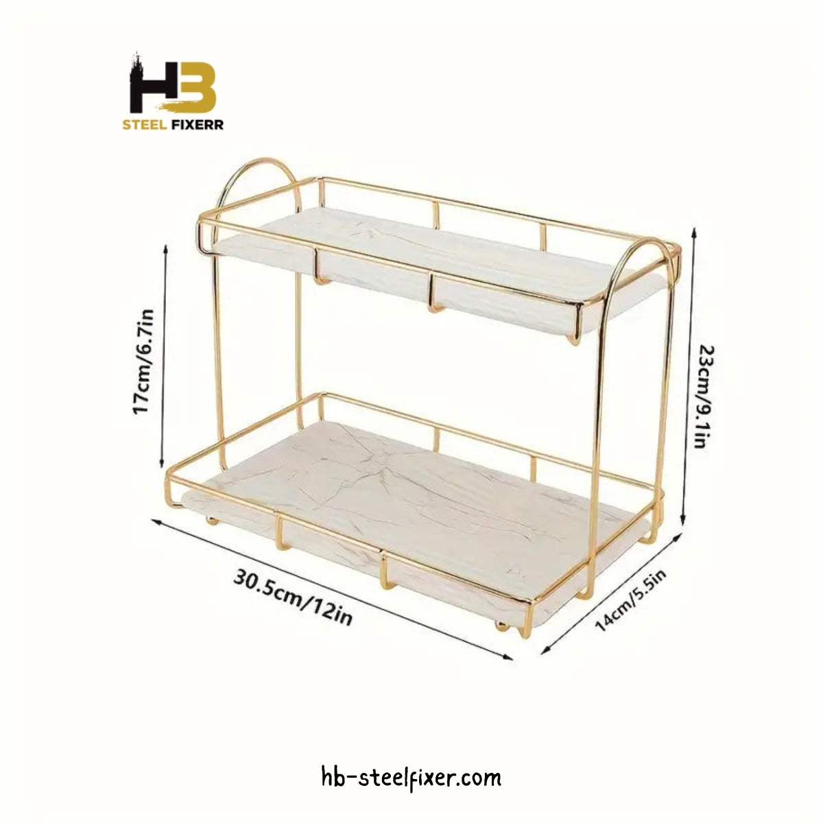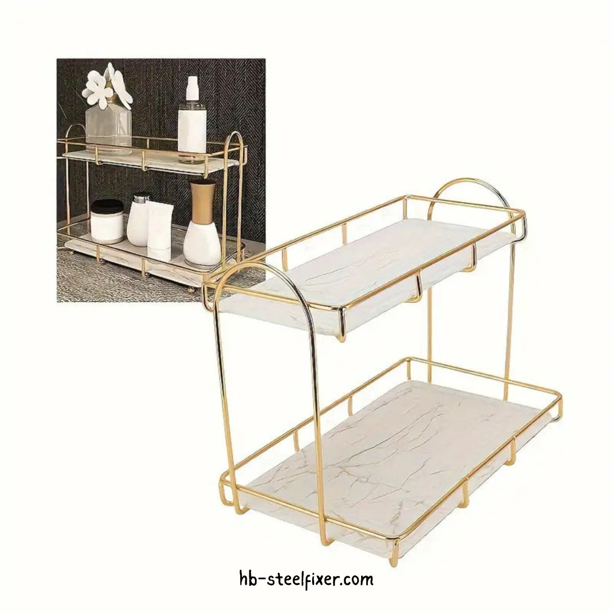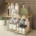 Upgrade your vanity or bathroom with this elegant 2-tier golden organizer. Featuring a durable stainless steel frame and removable acrylic trays, it's ideal for organizing your cosmetics, skincare, perfumes, and toiletries—while saving precious counter space.