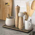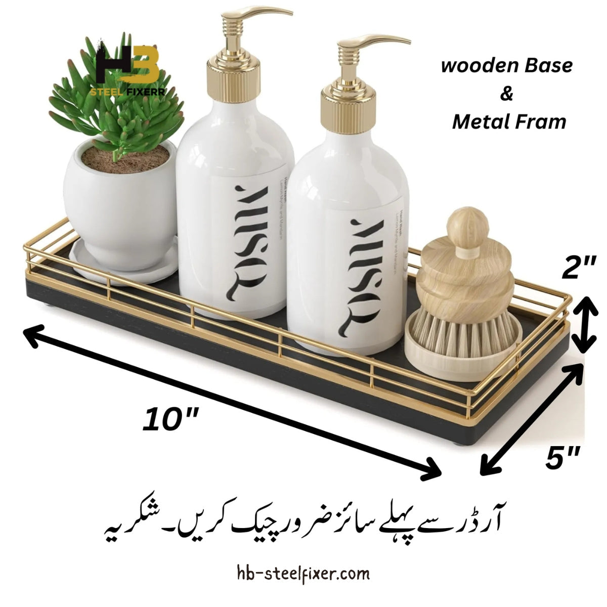 Elevate your space with this 10-inch wooden decorative tray. Whether used as a kitchen soap holder, spice rack, or perfume organizer, its gold-accented charm adds warmth and sophistication to any surface — handcrafted by HB Steel Fixerr.