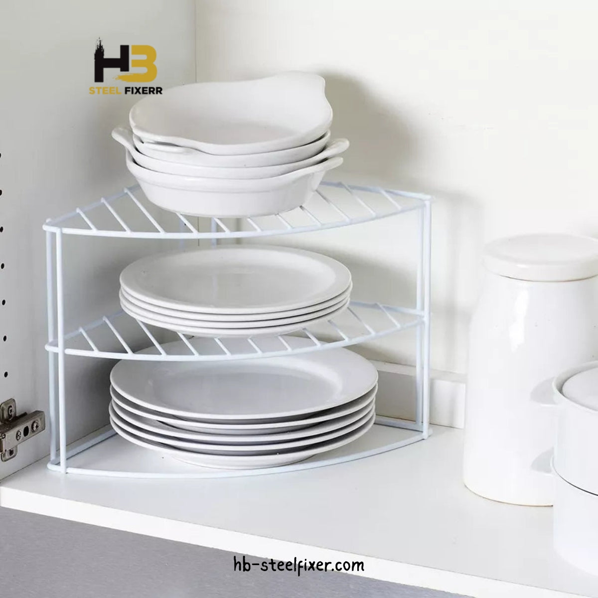 Maximize every inch of your kitchen with this compact yet heavy-duty 3-Tier Corner Shelf. Designed to fit perfectly into the corner of your cabinets or countertops, this rack allows you to neatly stack dinnerware, mugs, or kitchen items in a vertical format—saving space while adding functionality. Built from premium steel, it offers rust resistance and long-term durability even in wet environments. Ideal for kitchens with limited shelving or compact countertops.