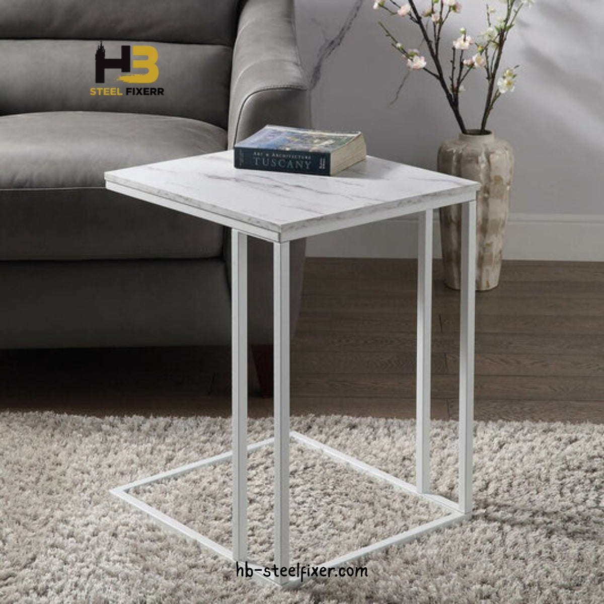 This modern C-shaped side table is designed for both function and style. Perfect for working from your sofa, bed, or accent chair, it offers a convenient surface for your laptop, tablet, or coffee. Once your tasks are done, it easily blends back into your living space as a sleek accent piece.