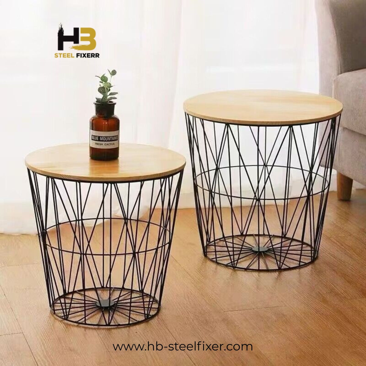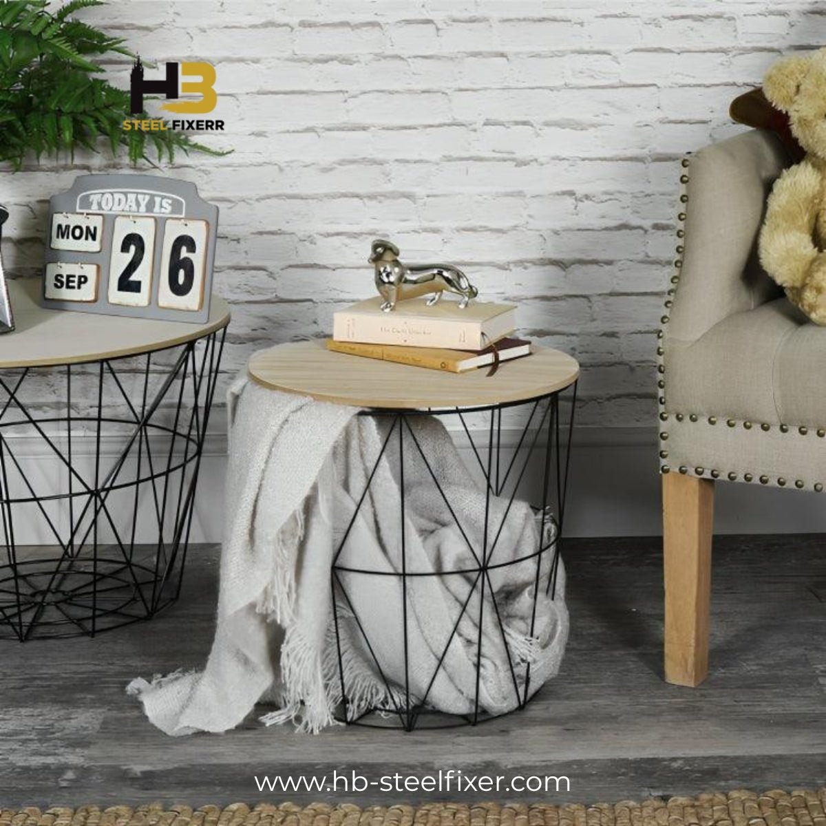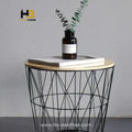Modern Iron Bedside Table with Storage Basket & Cover