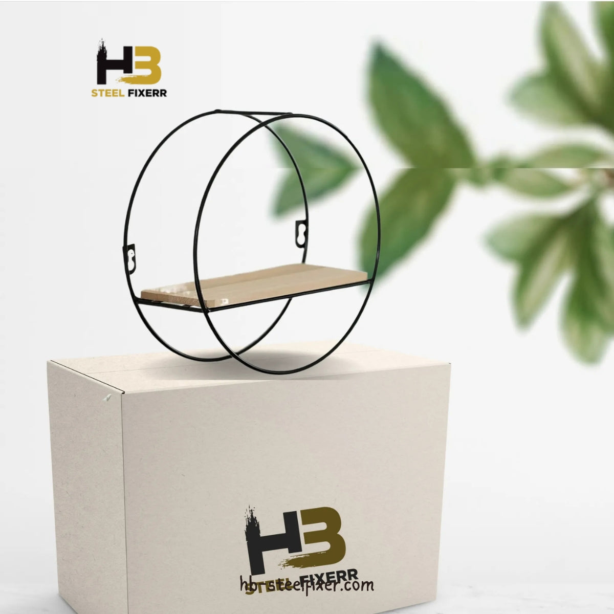 Enhance your interior with this modern round floating shelf featuring a sleek black metal frame and natural pine wood shelf. Ideal for displaying your favorite décor pieces, it blends style and function seamlessly — crafted by HB Steel Fixerr.
