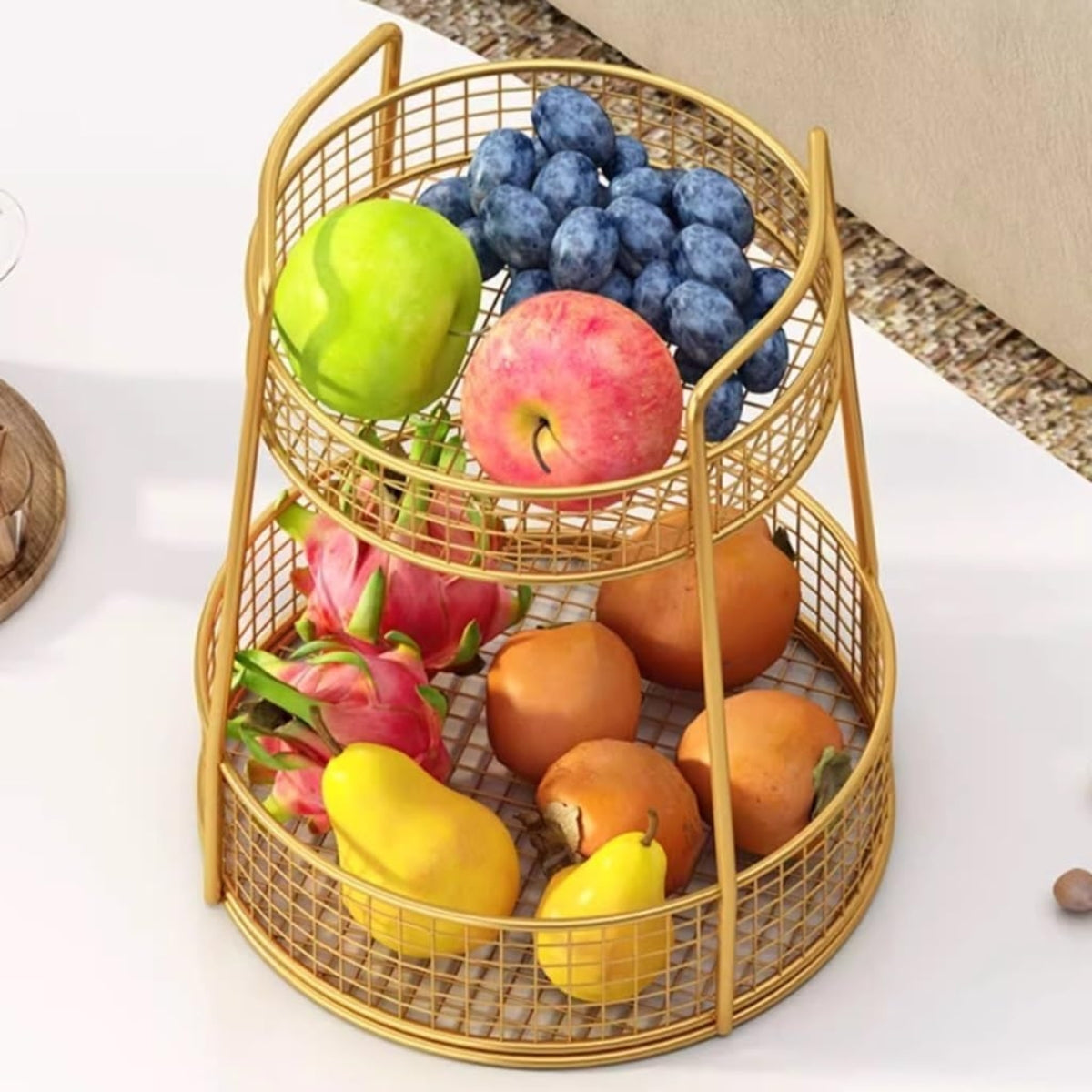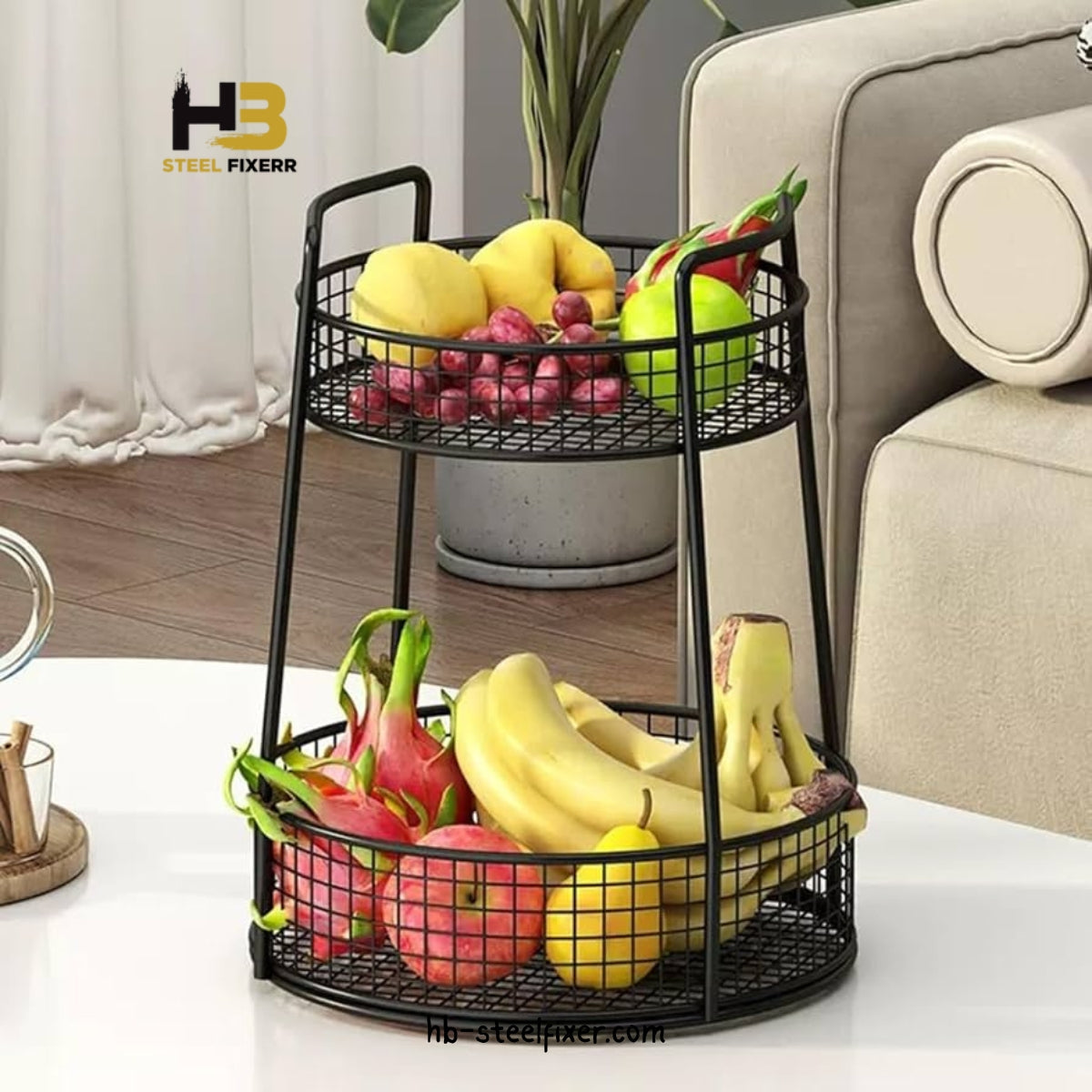 Keep your kitchen organized and stylish with this round double-layer fruit basket, perfect for storing fruits, vegetables, bread, and snacks. Crafted from durable cast iron with a food-safe powder-coated finish, this multi-purpose rack is ideal for countertops, dining tables, or under-cabinet storage. A modern solution for elegant storage that doubles as a thoughtful gift.