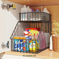 Maximize your space with this versatile 2-tier storage rack, perfect for kitchens, bathrooms, and under-sink cabinets. Made from durable iron with a sleek black finish, it’s ideal for organizing seasoning jars, toiletries, or cleaning supplies. Designed with raised guardrails and an open layout for easy access and stability, this rack is both functional and stylish for any room in your home.