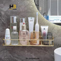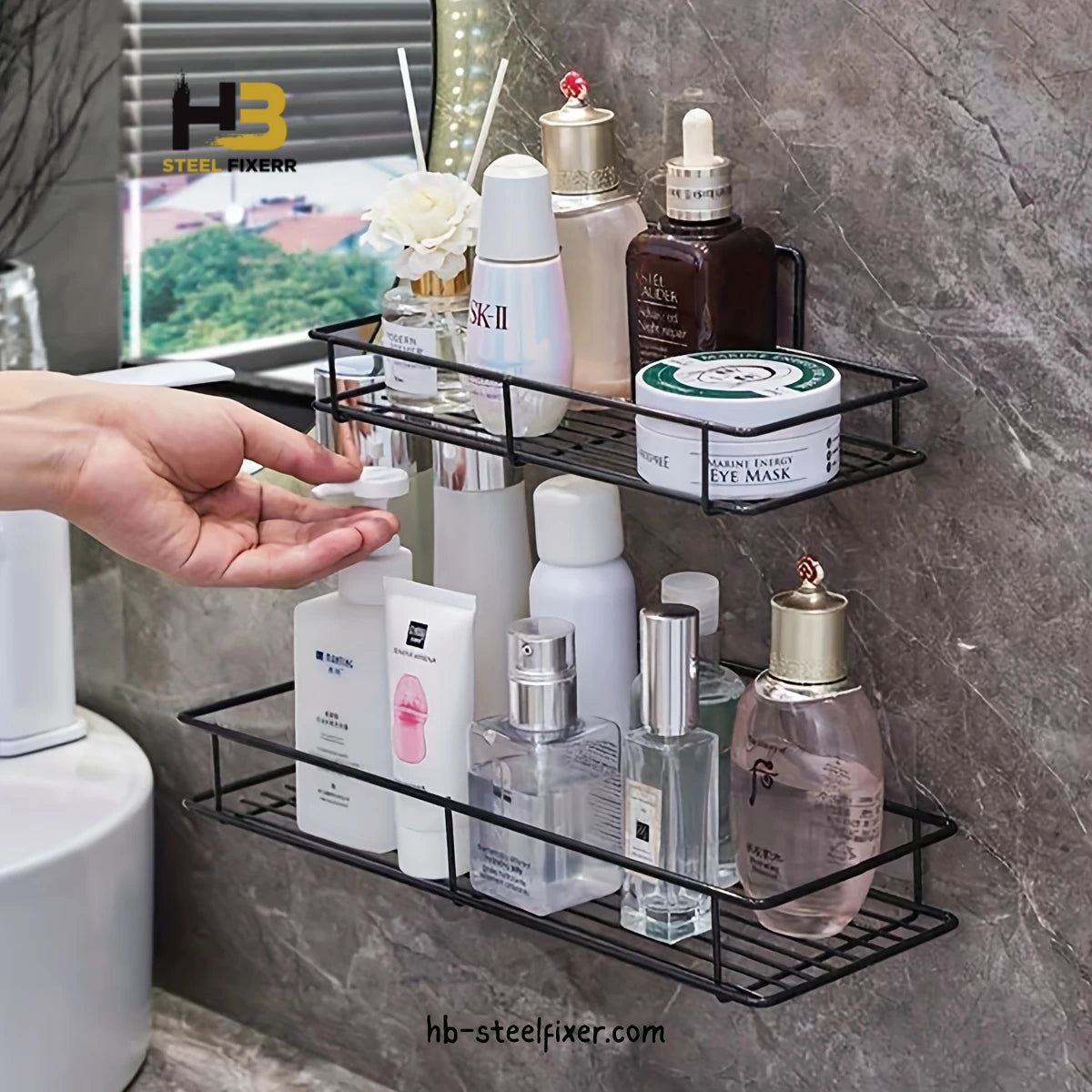 Keep your essentials neatly organized with this elegant wall-mounted storage rack, perfect for the bathroom, kitchen, or any space needing efficient storage. Crafted from durable iron, this shelf offers long-term reliability with a sleek finish that adds a modern, luxurious touch to any room. Its generous size provides ample space for storing toiletries, cosmetics, kitchen jars, or cleaning items. The tool-free adhesive installation makes it easy to mount on any wall—no drilling needed.