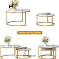 Elevate your living space with this set of two round coffee tables, combining modern elegance with everyday practicality. The large table features a spacious 30" diameter top at an 18" height, while the smaller table offers a 20" diameter at a 16" height, making them ideal for nesting or standalone use.