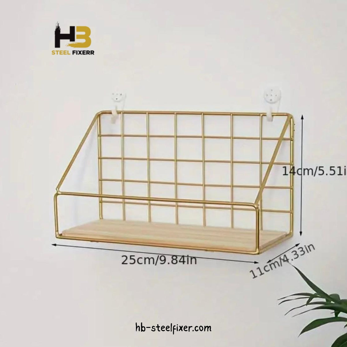 Multipurpose Wall-Mounted Storage Rack – Gold Metal Corner Shelf